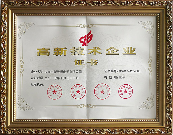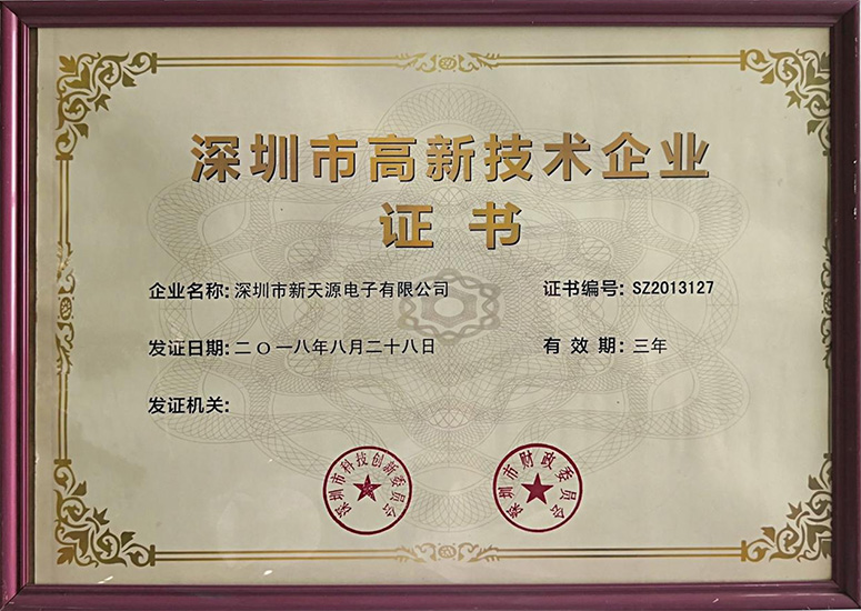 | 2010年 | 在甘肃天水建立分厂,成立新天源电子天水分公司,配置全新晶振生产线。同年荣获《深圳高新技术企业》证书荣获IATF16949认证 | |